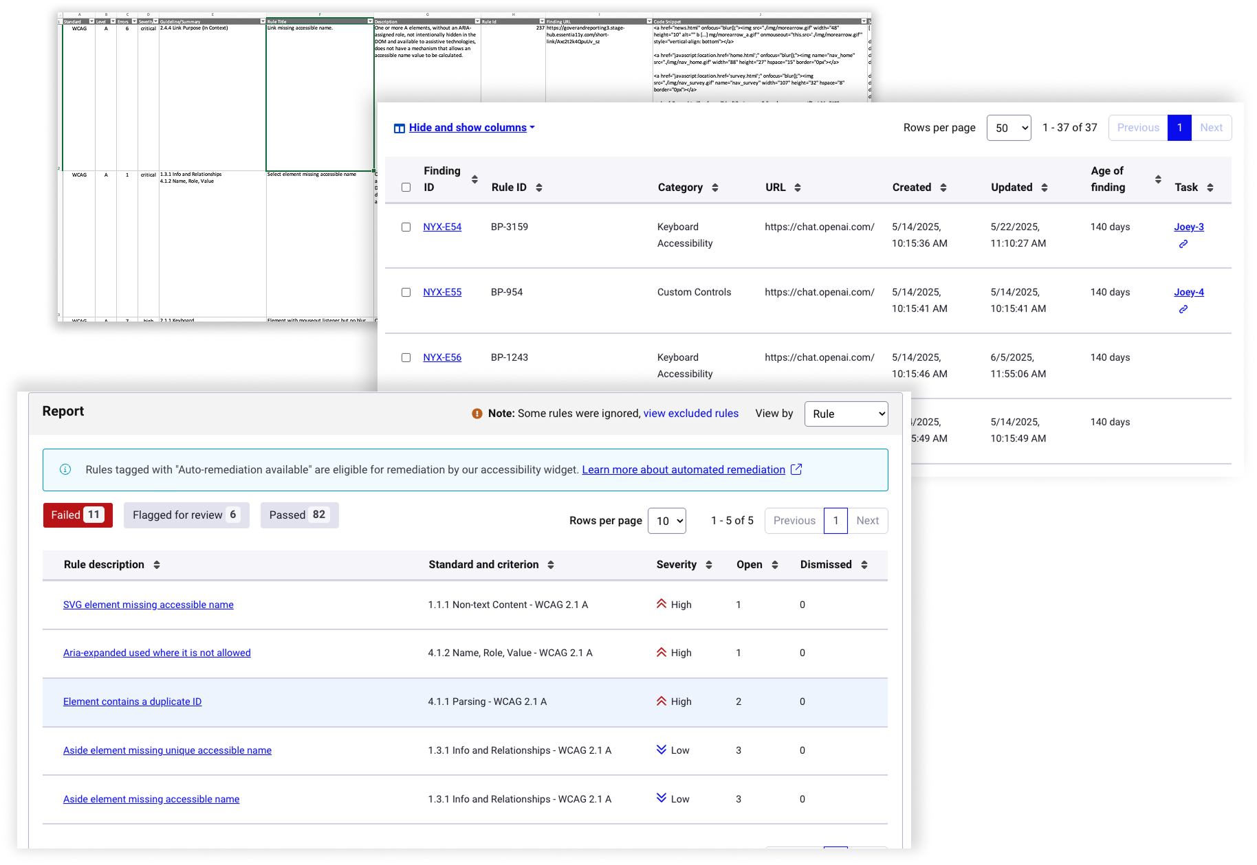 Teams struggled to act on accessibility issues. Findings were scattered across scans, evaluations, and reports, making it unclear what to fix first or where to track progress. This led to confusion, duplicated effort, and slow remediation.